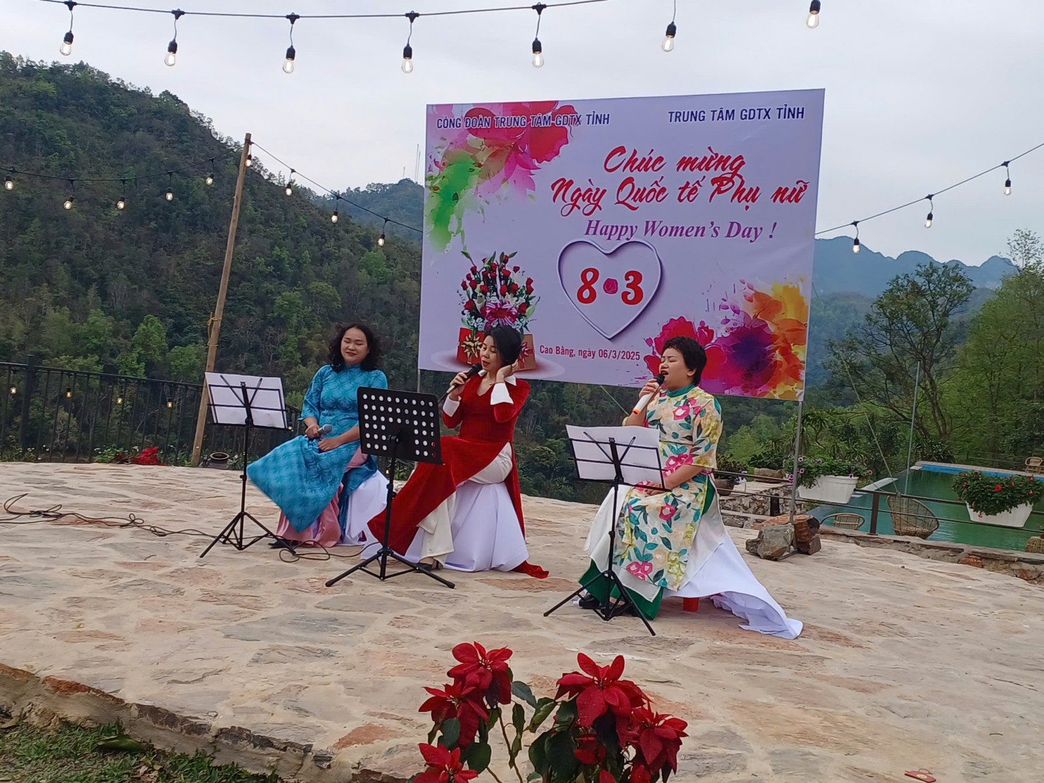 Hòa chung không khí vui tươi, phấn khởi chào mừng Ngày Quốc tế Phụ nữ 8/3, Công đoàn Trung tâm Giáo dục thường xuyên phối hợp với Trung tâm tổ chức các hoạt động kỷ niệm 115 năm ngày Quốc tế phụ nữ 8/3 tại Khu du lịch sinh thái Khuổi Hân (Quốc lộ 3, phường Ngọc Xuân, Thành phố Cao Bằng). Các hoạt động kỷ niệm nhằm tôn vinh vai trò của nữ cán bộ, giáo viên, nhân viên trong sự nghiệp xây dựng và phát triển Trung tâm, đồng thời tạo sân chơi gắn kết giữa các đoàn viên công đoàn của Trung tâm.
